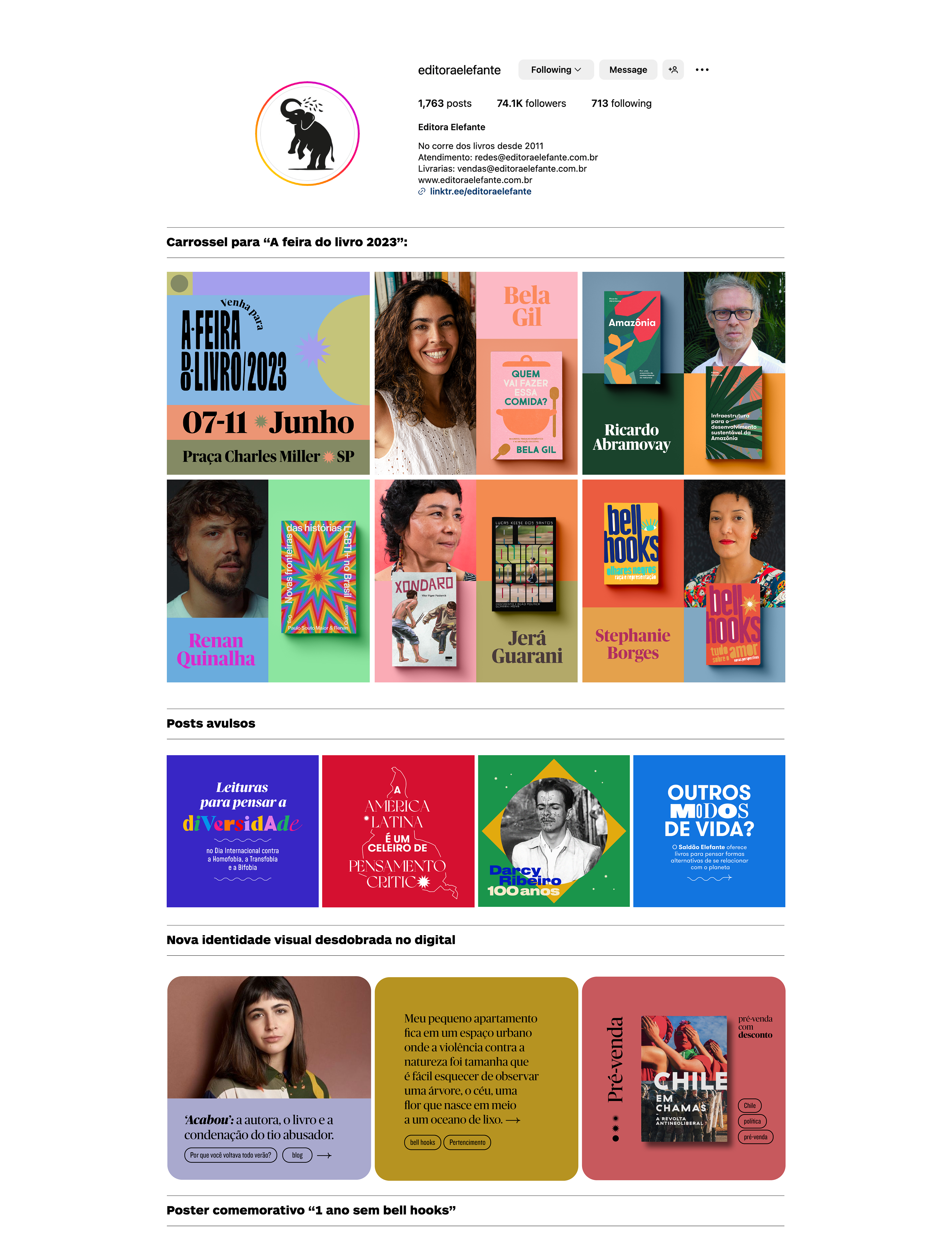 Trabalhos desenvolvidos como conteúdo digital para a Editora Elefante.